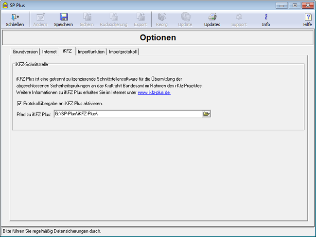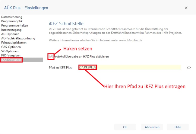 - Wählen Sie bei "Pfad zu iKFZ Plus:" den Ordner aus, in den Sie iKFZ Plus installiert haben